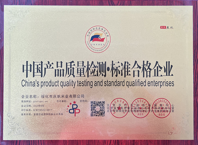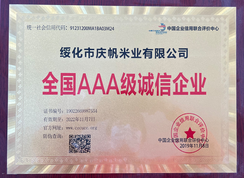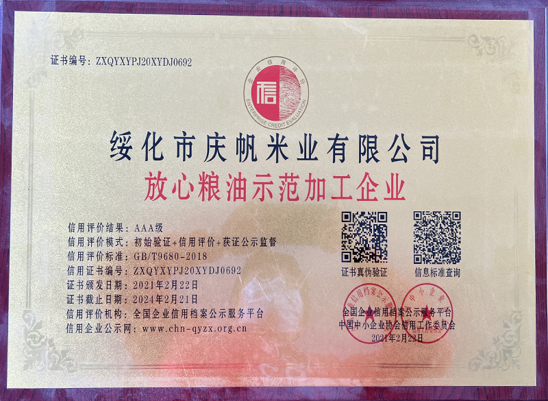 關(guān)于慶帆米業(yè) 客戶至上 品質(zhì)優(yōu)良 您現(xiàn)在的位置:網(wǎng)站首頁 > 關(guān)于我們 > 資質(zhì)榮譽 企業(yè)文化 CORPORATE CULTURE 資質(zhì)榮譽 HONOR 領(lǐng)導(dǎo)致辭 LEADER’S SPEECH 公司簡介 COMPANY PROFILE 黑龍江省質(zhì)量品牌雙保障信用認證企業(yè) 放心糧油示范加工企業(yè) 綠色品牌 中國綠色“健康米” 全國AAA級誠信企業(yè) 中國產(chǎn)品質(zhì)量檢測標準合格企業(yè) 共15條記錄 當前為第2頁/共3頁上一頁123下一頁